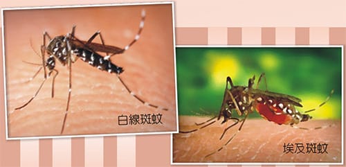 傳播骨痛熱症的黑斑蚊品種包括白線斑蚊及埃及斑蚊。