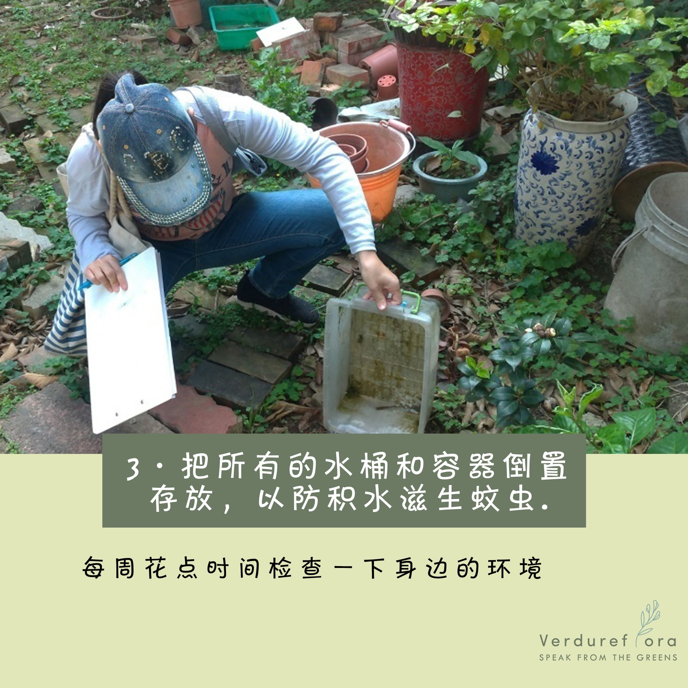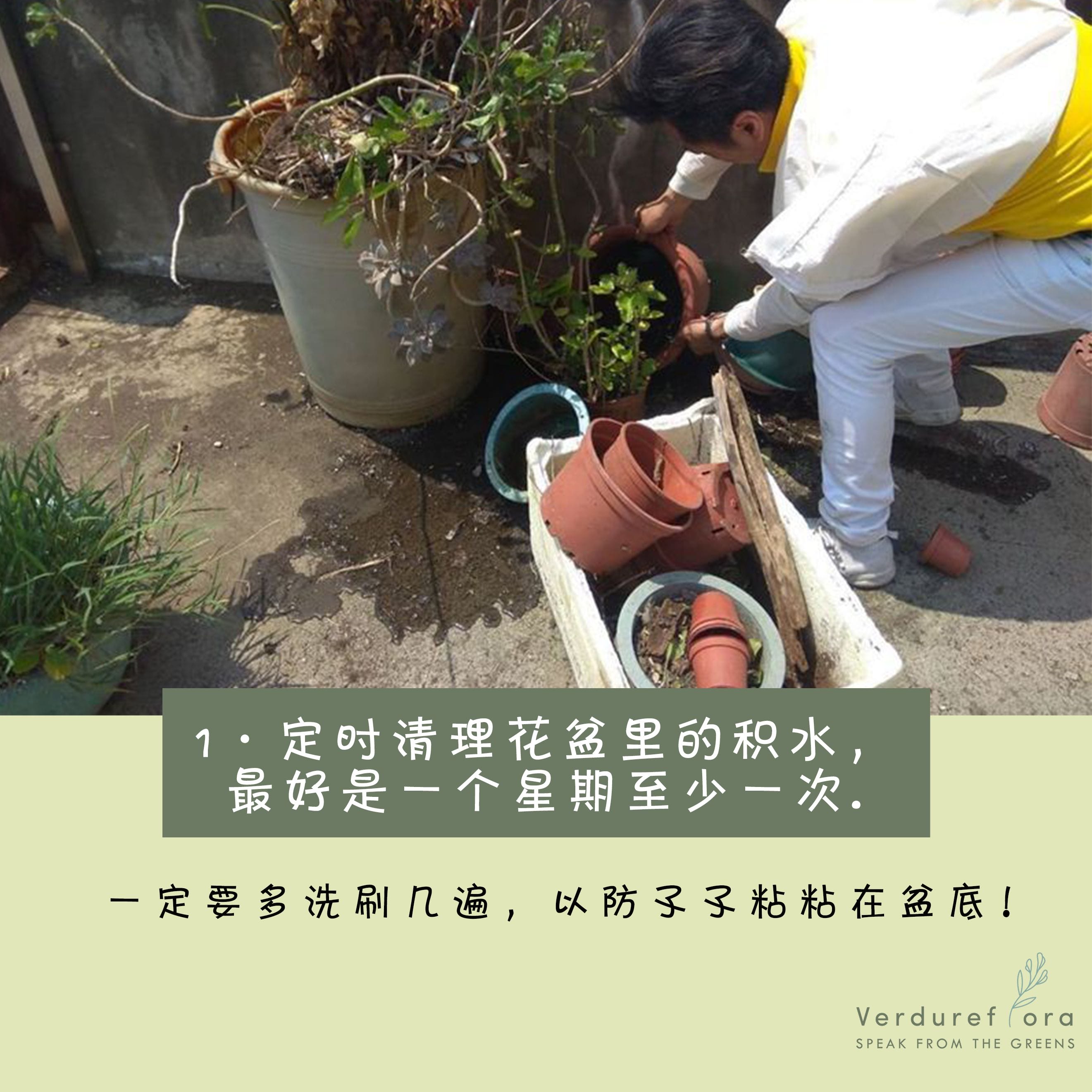 - 減少使用有底盤的花盆或定時清理花盆的積水。