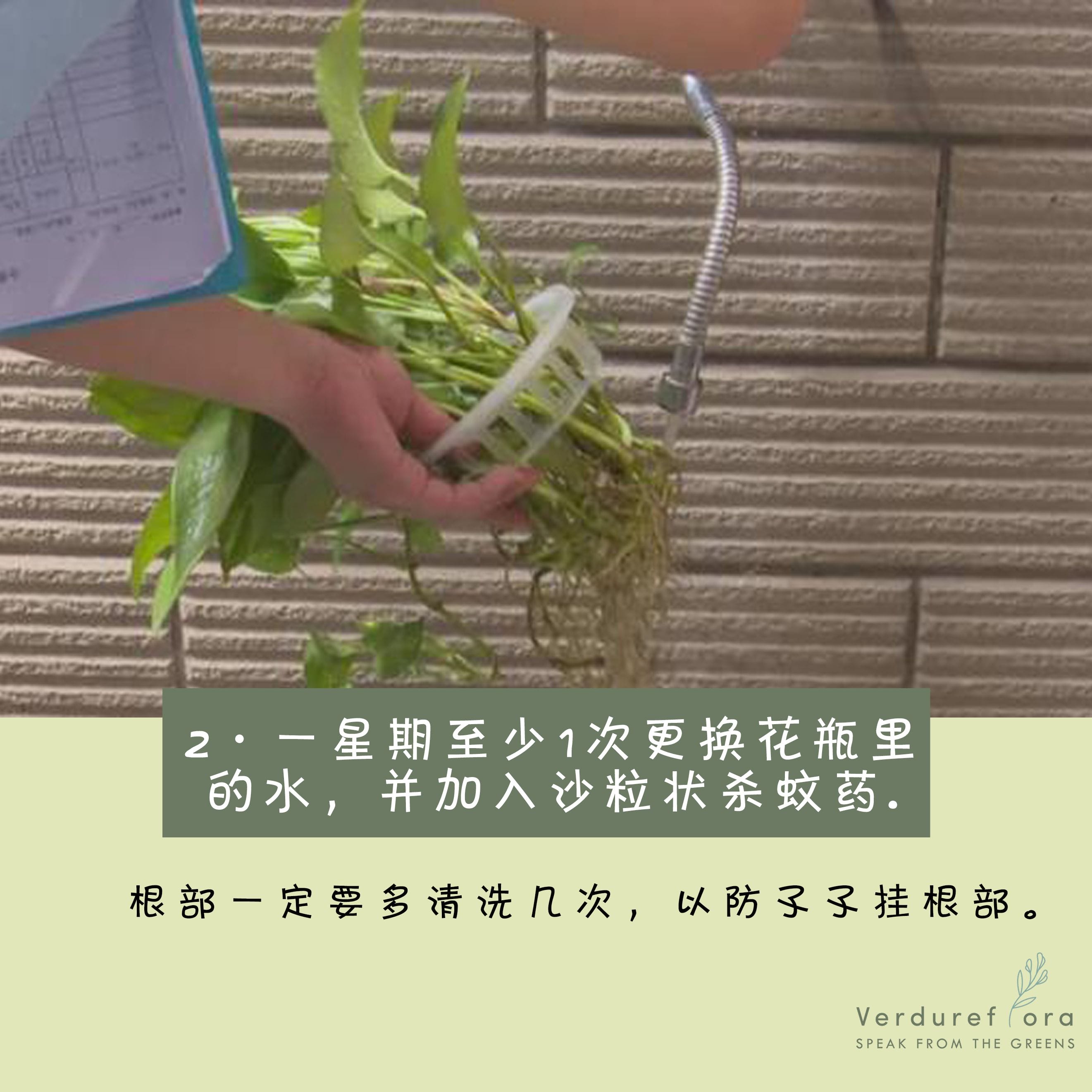 - 每星期換一次花瓶裡面的水, 並加入沙粒狀殺蚊藥。